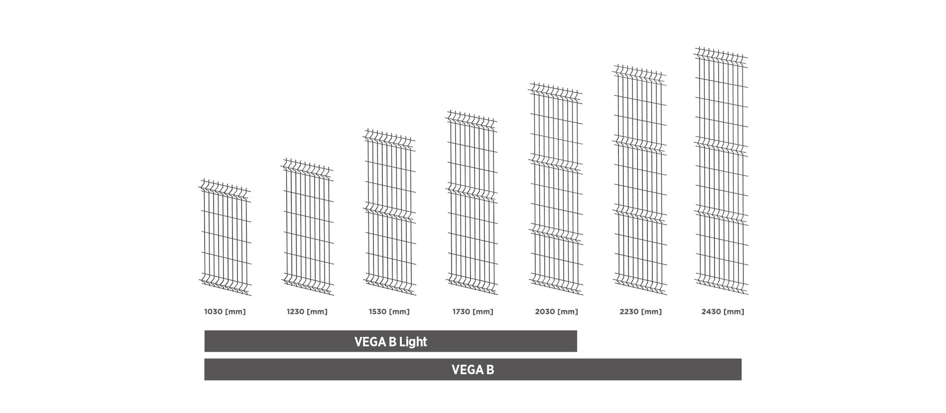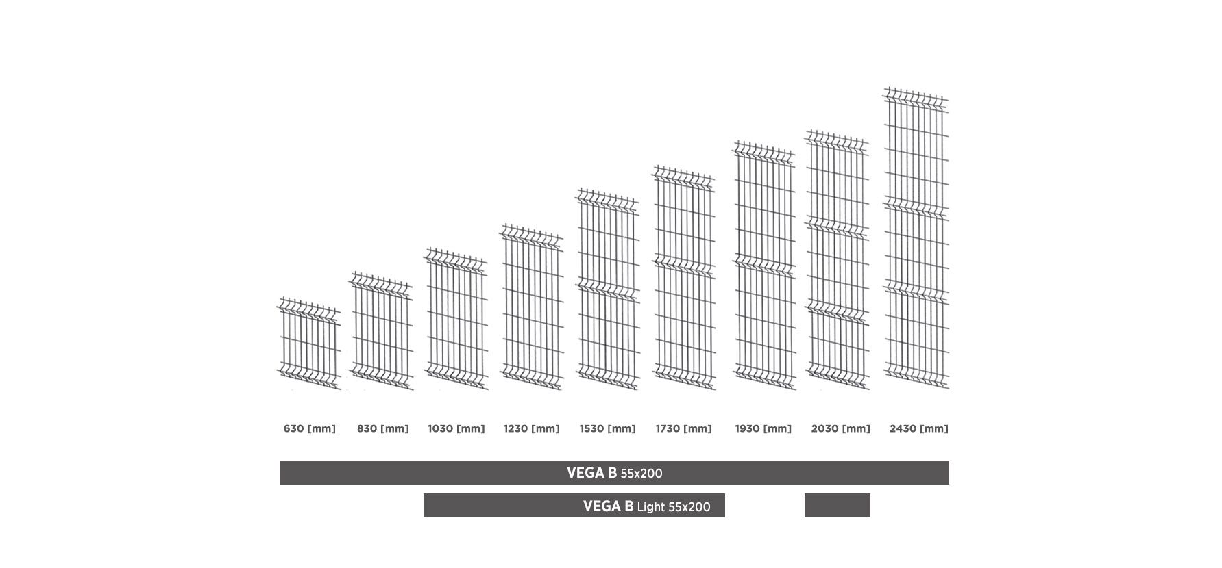 Overzicht van de paneelhoogtes VEGA B 55x200 en VEGA B Light 55x200