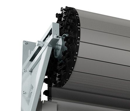 tijdens het oprollen verandert de as positie ten opzichte van de latei, waardoor de deur perfect in lijn blijft met de geleiders.