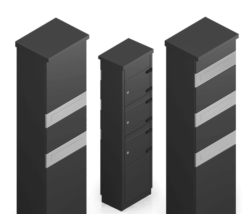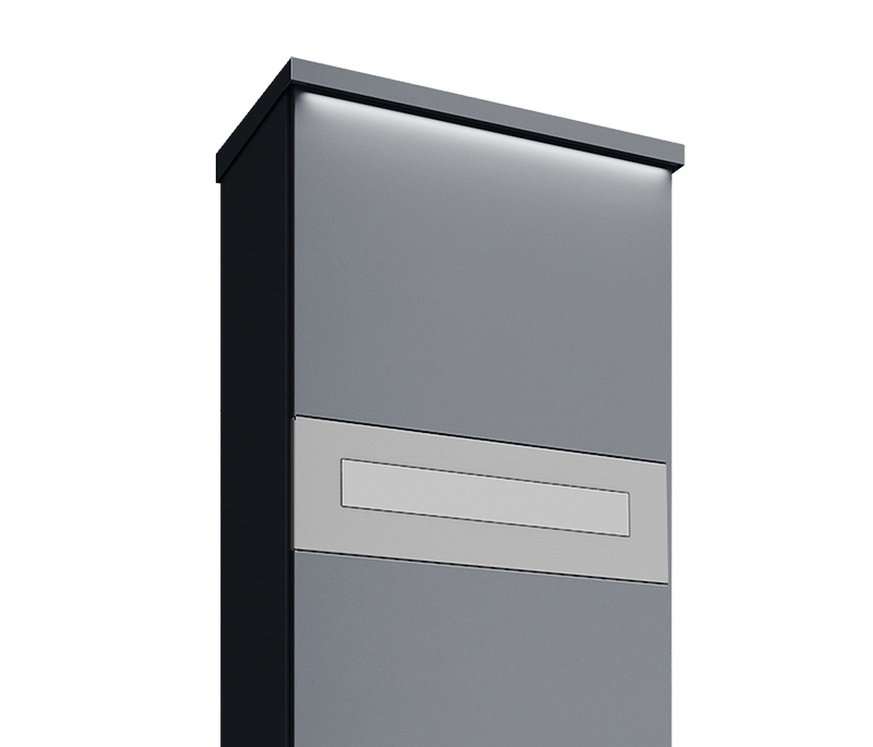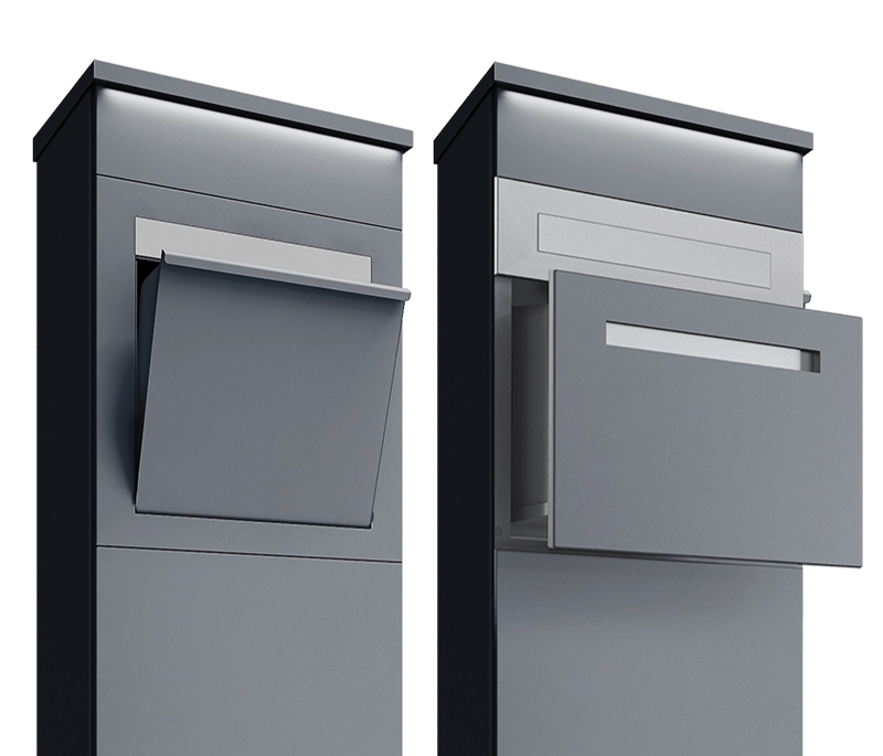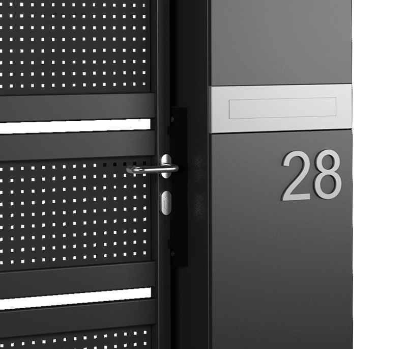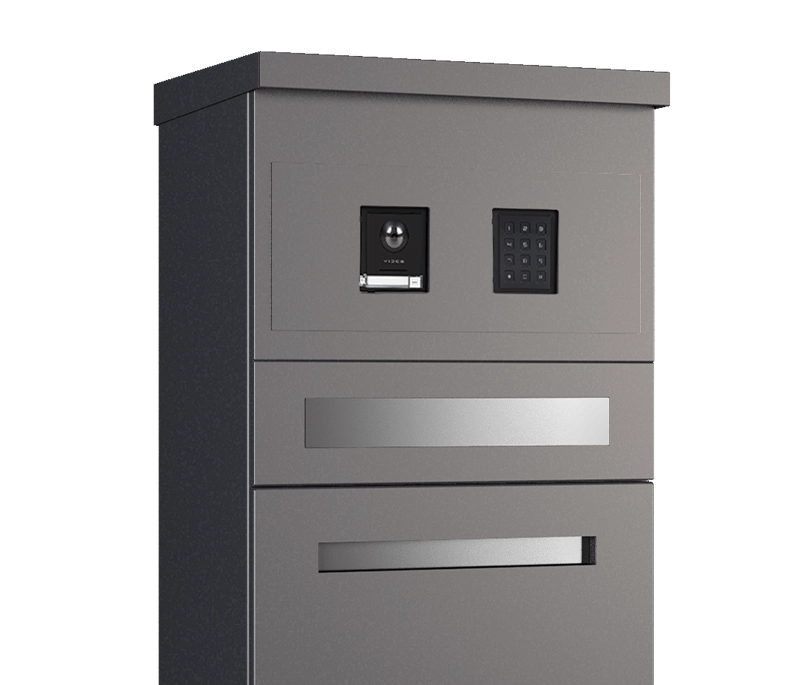 Een unieke, multifunctionele afsluitingspaal geïntegreerd met een brievenbus, video-intercom of codeschakelaar.