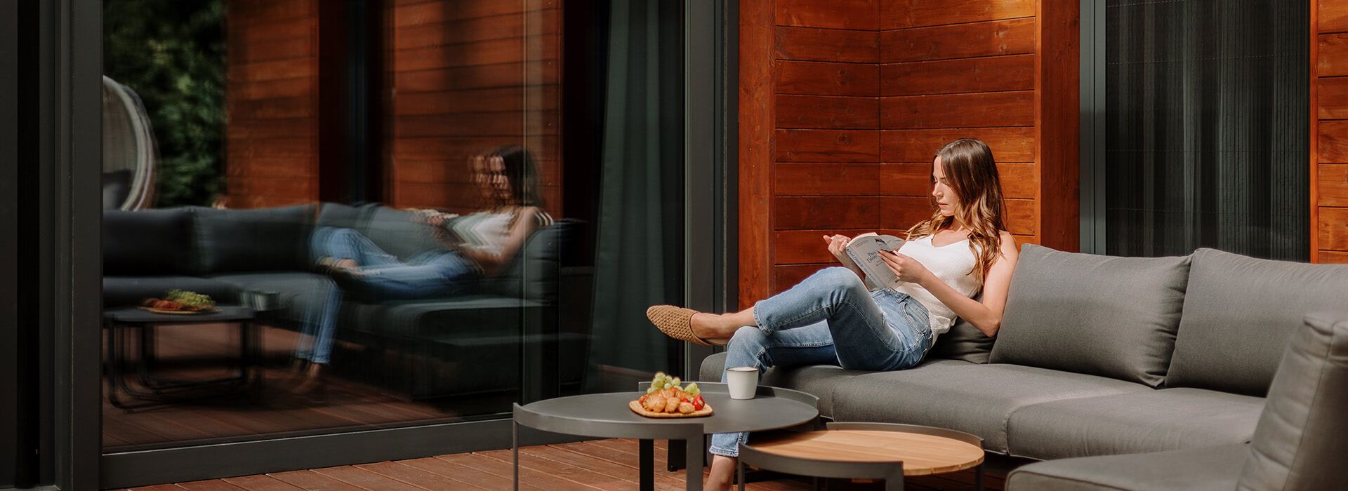 Slide-terrasdeuren combineren de beste eigenschappen van HST- en PSK-systemen. Ze garanderen comfortabel openen en sluiten, de hoogste klasse van waterdichtheid en zijn tegelijkertijd een economische oplossing voor je woonkamer.